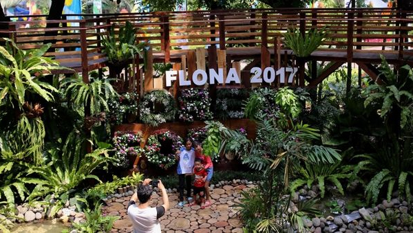 Keterangan Foto: Pengunjung menikmati suasana yang ditampilkan dalam ajang Pameran Flora dan Fauna (Flona) 2017 dengan tema Jadikan Jakarta Sahabat Alam Kita di Lapangan Banteng, Jakarta Pusat, Sabtu (22/7/2017). Ajang yang terbuka dan gratis untuk umum ini berlangsung selama 1 bulan, serta bisa dimanfaatkan warga untuk semakin mencintai lingkungan. (KOMPAS.com/GARRY ANDREW LOTULUNG)